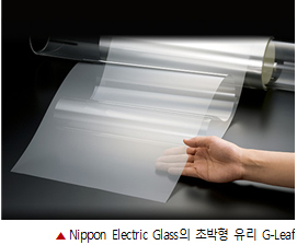 UTG는 두께 100마이크로미터 이하로 매우 얇은 유리이며 폴더블 스마트폰 보호막 역할을 할 부품으로 주목받고 있다.