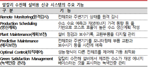 표, 그래프: <알칼리 수전해 설비용 신규 시스템의 주요 기능>
