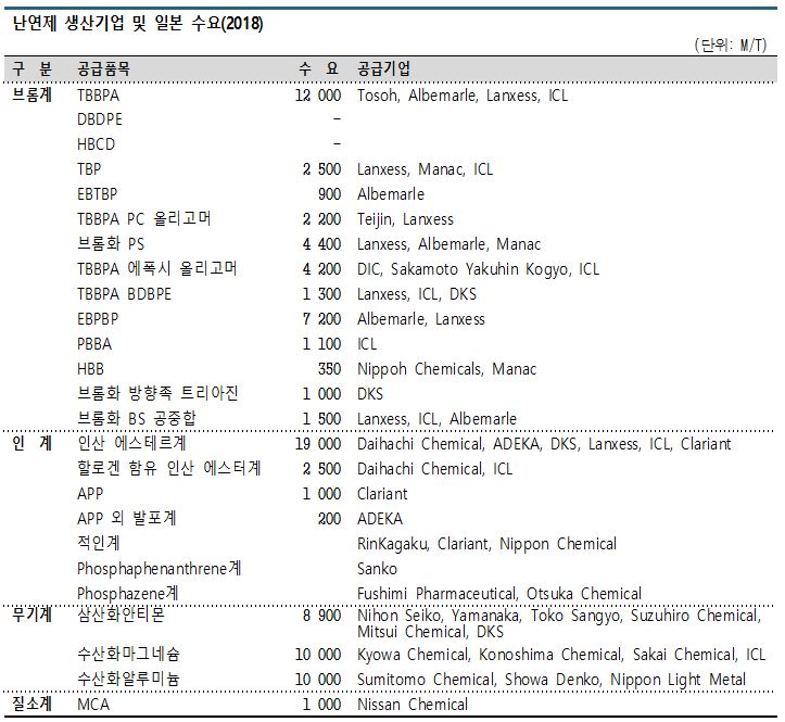 난연용은 일본 수요가 약 1만톤으로 추정되고 있다. (J)