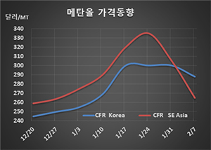 메탄올(Methanol)은 동남아시아가 폭락하는 이변이 연출됐다.