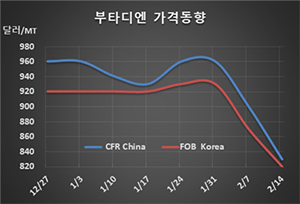 표, 그래프: <Butadiene 가격동향> <화학저널 2020/02/18> |