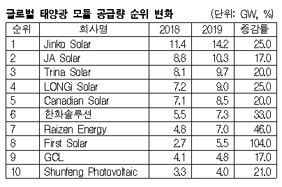 2019년 공급량 7.3GW로 33% 급증 … 중국이 1-5위 싹쓸이