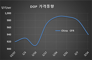 표, 그래프: <DOP 가격동향> <화학저널 2020/02/20> |