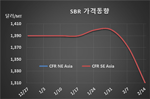표, 그래프: <SBR 가격동향> <화학저널 2020/02/21> |