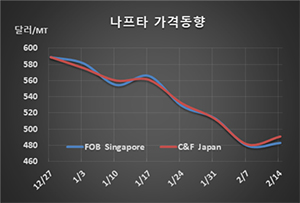 표, 그래프: <Naphtha 가격동향> <화학저널 2020/02/21> |