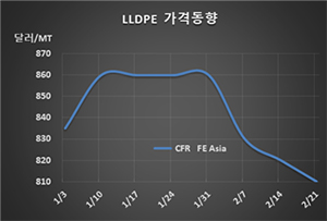 표, 그래프: <LLDPE 가격동향> <화학저널 2020/02/24> |