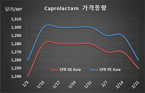표, 그래프: <Caprolactam 가격동향> <화학저널 2020/02/27> |