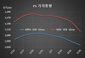 PS(Polystyrene)는 고충격 그레이드가 대폭락했다.