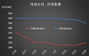 표, 그래프: <가성소다 가격동향> <화학저널 2020/03/06> |