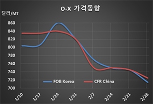 표, 그래프: <O-X 가격동향> <화학저널 2020/03/06> |