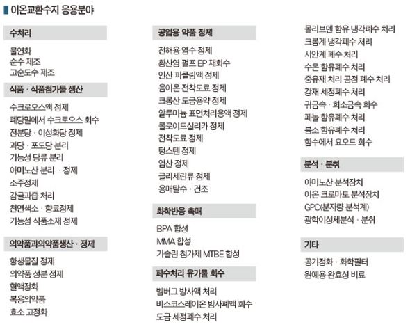 이온교환수지 생산기업들은 고부가가치화를 목표로 애플리케이션 및 커스터마이징 기술 개발에 힘을 기울이고 있다.