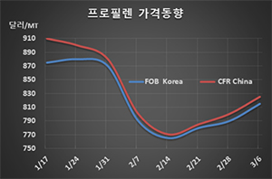 FOB Korea 815달러로 25달러 상승 … 중국, PDH 가동중단 잇따라