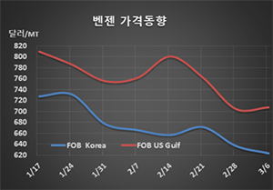 벤젠(Benzene)은 600달러대 초반으로 밀려났다.
