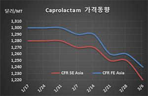 카프로락탐(Caprolactam)은 1200달러 초·중반으로 밀려났다.