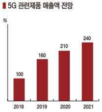 Mitsui Mining & Smelting(MMS)이 5G 시대에 맞추어 기능성 화학소재 사업을 확대하고 있다. 표, 그래프: <5G 관련제품 매출액 전망> <화학저널 2020년 3월 16일> |
