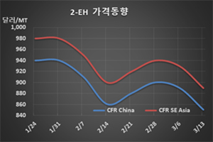 표, 그래프: <2-EH 가격동향> <화학저널 2020/03/17> |
