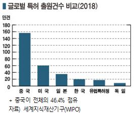 중국은 특허 출원건수가 8년 연속 세계 1위를 차지했으며 최근에는 양 뿐만 아니라 질적으로도 향상된 것으로 평가되고 있다.
