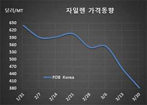 화학뉴스 2020.03.26 M-X(Mixed-Xylene)는 400달러가 무너졌다.