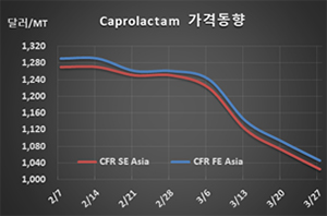 표, 그래프: <Caprolactam 가격동향> <화학저널 2020/04/02> |