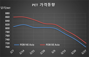 화학뉴스 2020.04.02 PET(Polyethylene Terephthalate)는 700달러에 턱걸이했다.