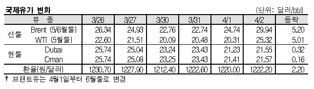 브렌트유, 29.94달러로 5.20달러 올라 … 두바이유는 21.55달러로