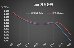 표, 그래프: <SBR 가격동향> <화학저널 2020/04/03> |