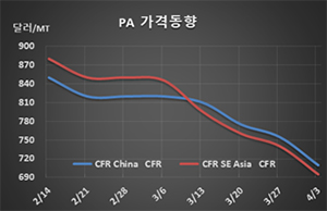 표, 그래프: <PA 가격동향> <화학저널 2020/04/09> |