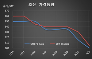 화학뉴스 2020.04.10 초산(Acetic Acid) 체인은 폭락세가 불가피해지고 있다.