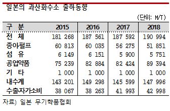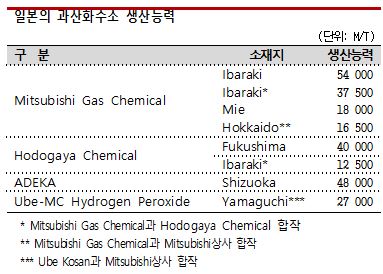 과산화수소(Hydrogen Peroxide)는 수요 증가율이 둔화되고 있다. 표, 그래프: <일본의 과산화수소 출하동향, 일본의 과산화수소 생산능력> <화학저널 2020년 4월 20일> |