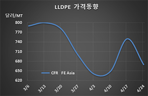 표, 그래프: <LLDPE 가격동향> <화학저널 2020/04/27> |