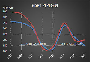 CFR FE Asia 680달러로 30달러 급락 … 포장·의료용 증가 역부족