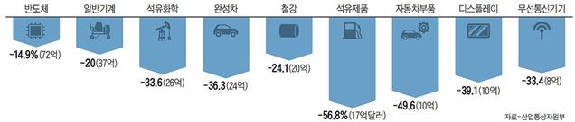 산업부, 26억달러로 33.6% 줄어 … 석유제품, 17억달러로 반토막 신세