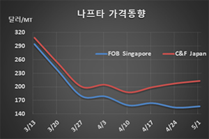 표, 그래프: <Naphtha 가격동향> <화학저널 2020/05/08> |