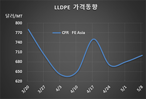 표, 그래프: <LLDPE 가격동향> <화학저널 2020/05/11> |