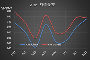 표, 그래프: <2-EH 가격동향> <화학저널 2020/05/19> |