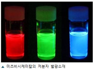 미츠비시케미칼이 생산하는 저분자 발광소재는 저점도이기 때문에 잉크젯에서 잉크 사용량을 줄일 수 있는 이점이 있다.