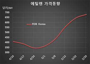 에틸렌(Ethylene)은 700달러에 육박했다.