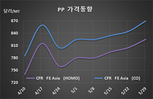 표, 그래프: <PP 가격동향> <화학저널 2020/06/02> |