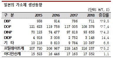 일본, DEHP에서 DINP로 전환 … 생산‧출하 감소로 수입 증가세