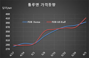 표, 그래프: <톨루엔 가격동향> <화학저널 2020/06/10> |