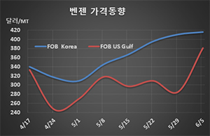 벤젠(Benzene)은 미국 현물가격이 폭등했다.