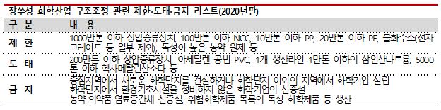 표, 그래프: <장쑤성 화학산업 구조조정 관련 제한∙도태∙금지 리스트(2020년판)> <화학저널 2020년 6월 22·29일> |