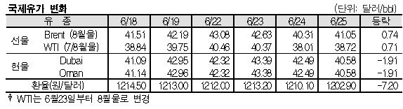 표, 그래프: <국제유가 변화> <화학저널 2020/06/26> |