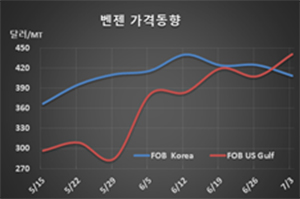 표, 그래프: <Benzene 가격동향> <화학저널 2020/07/08> |