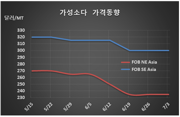 가성소다(Caustic Soda)는 약세를 계속하고 있다.
