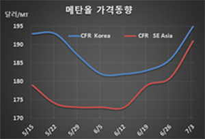 표, 그래프: <Methanol 가격동향> <화학저널 2020/07/10> |