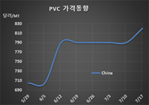 표, 그래프: <PVC 가격동향> <화학저널 2020/07/21> |
