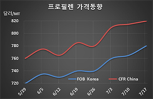 표, 그래프: <Propylene 가격동향> <화학저널 2020/07/21> |