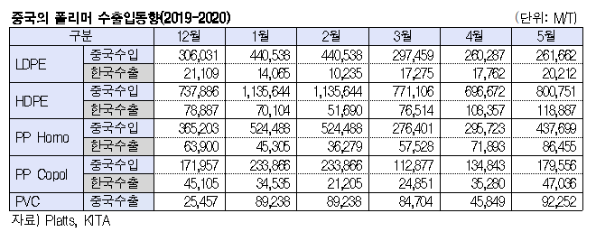 5월 호모‧코폴리머 급증 … LDPE 2만톤 회복에 HDPE 12만톤 육박