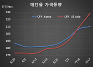 표, 그래프: <Methanol 가격동향> <화학저널 2020/07/24> |